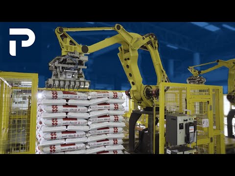 RPL Series robotic palletizers are the most efficient robotic cells for virtually any bag / bale palletizing needs. The heavy-duty robotic cell can simultaneously gather bags or bales from many different incoming product lines. It can be configured to fit in confined spaces and stands out in the market for its wide flexibility. The in-house designed and manufactured gripper allows the RPL Series to satisfy the many different palletization requirements of modern packaging installations. Compatible with all common standard industrial pallets. All our equipment is PLC controlled with user-friendly human machine interfaces (HMI). Quick changeover of palletizing patterns via stored recipes, different layer pattern versatility and compliance with CE regulations. Speed: up to 1.800 bags per hour. Features: automatic bag width adjustment to automatically palletize multiple bag sizes with finger or multi pick-up gripper. Usage in highly corrosive environments. Versatility in layout configuration. Flexible footprint. Empty pallet or slip sheet handling via robot. Secured system configuration.