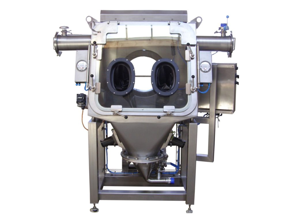 The Containment drum discharging station with glovebox and integrated lifting device is one of the leading systems for the dust- and contamination-free bulk solids industry. The easy handling during the discharging process as well as the simplicity of the drum connection are unique. Depending on your requirements, transport to the next process step is possible by gravity or via the effective pneumatic conveying system ProClean Conveyor PCC. Depending on your product it is possible to connect a suction shoe for the conveying system or, as an option a stirring de-vice. Due to the unique drum discharging station it is possible to achieve containment levels.