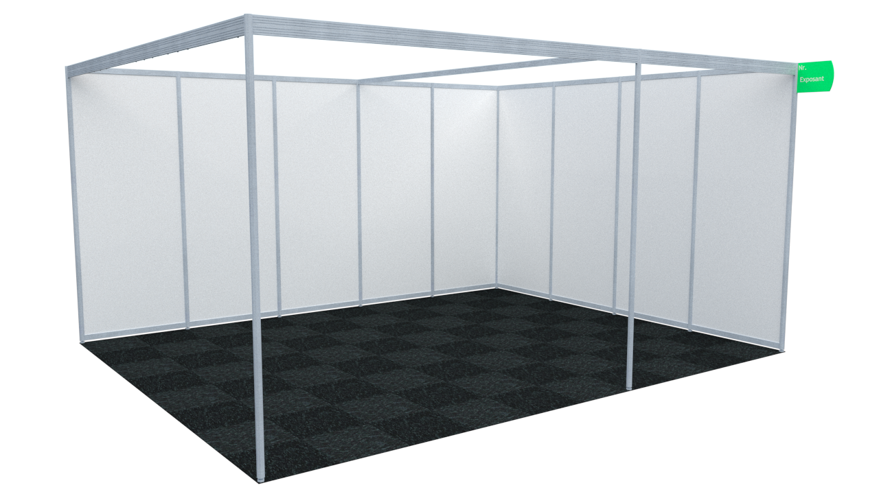 Een Space Only stand is inclusief antracietgrijze tapijttegels.